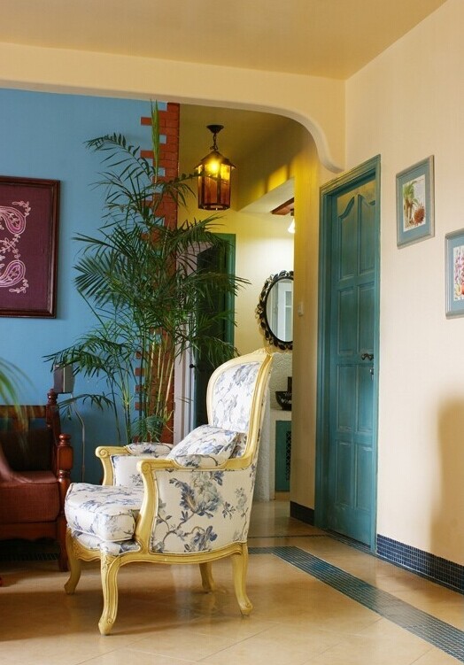 碎花沙發(fā)配以綠色植物--小清新